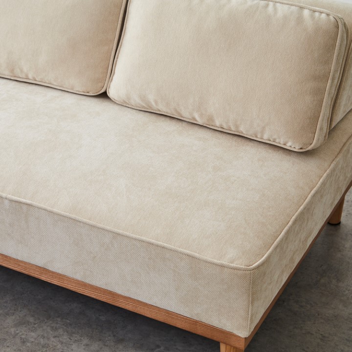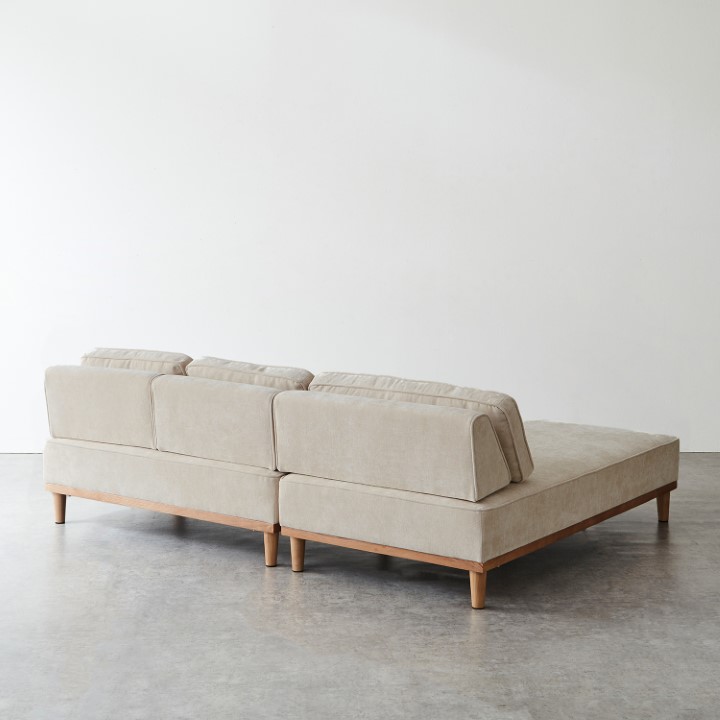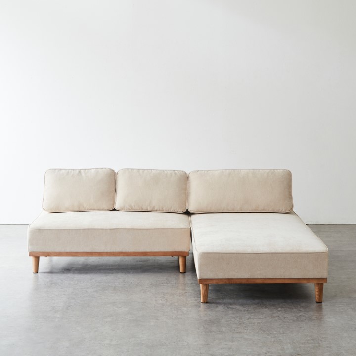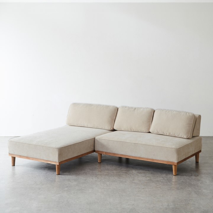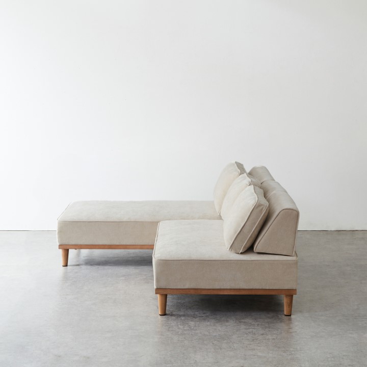 シンプルなフォルムに、使いやすさと心地よさを詰め込んだ3人掛けカウチソファ。
