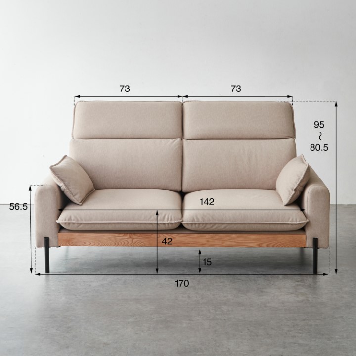 | サイズ | 幅170cm × 奥行98cm × 高さ80~95cm 座面高:42cm |