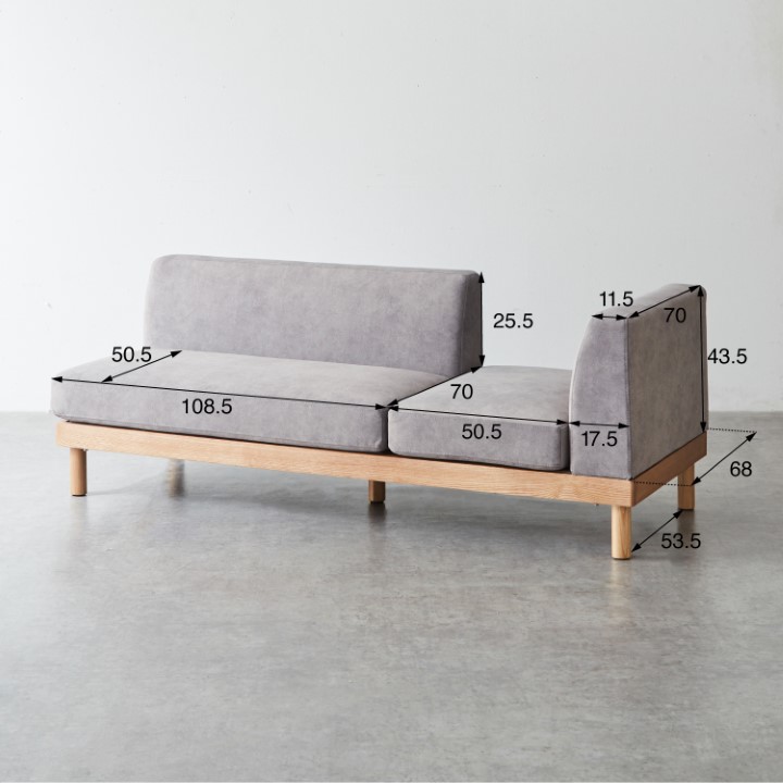| 素材 | 構造部材:合板、アッシュ材 表面加エ:ラッカー塗装 張り材:ファブリック クッション材:ウレタンフォーム、ポケットコイル |