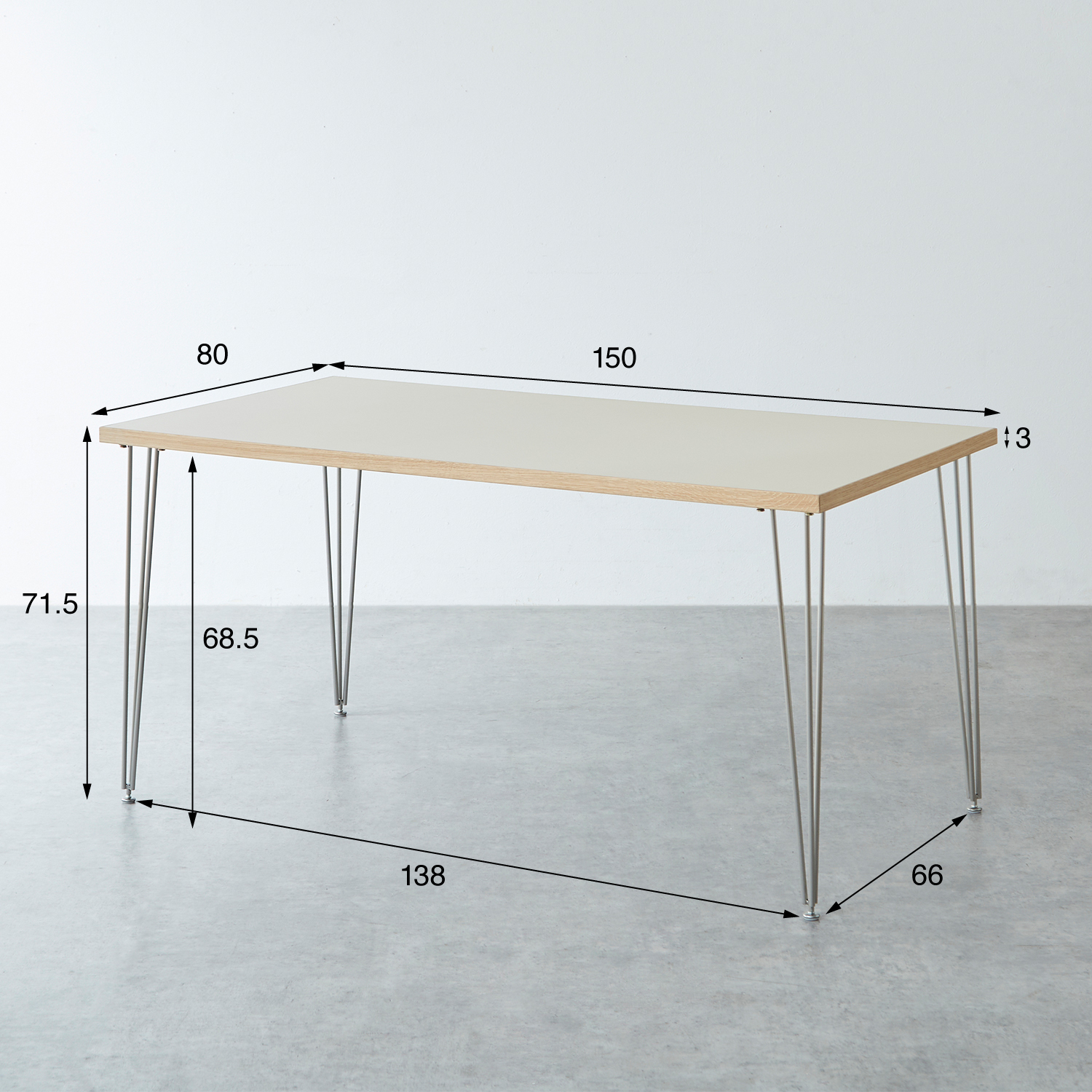| サイズ | 幅150cm × 奥行80cm × 高さ71.5cm 天板厚み:3cm |