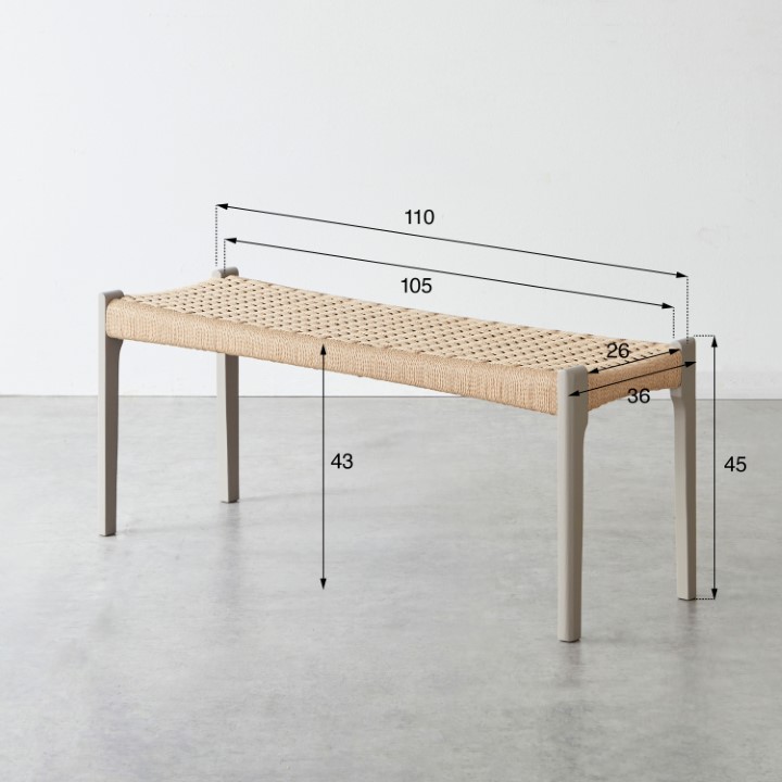 | サイズ | 幅110cm × 奥行36cm × 高さ45cm 座面高:43cm |