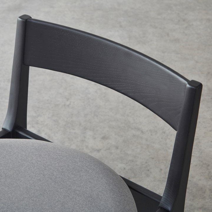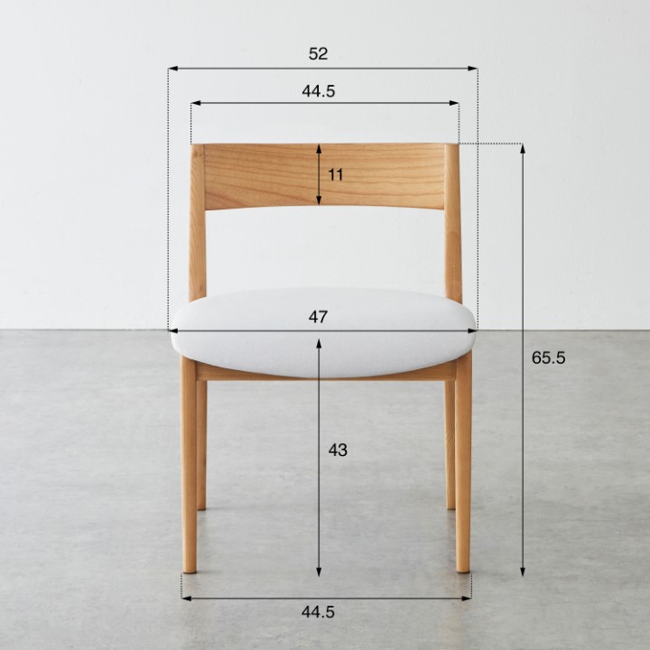 天然木アッシュ材とファブリックの柔らかな風合いが調和するアームレスチェア。