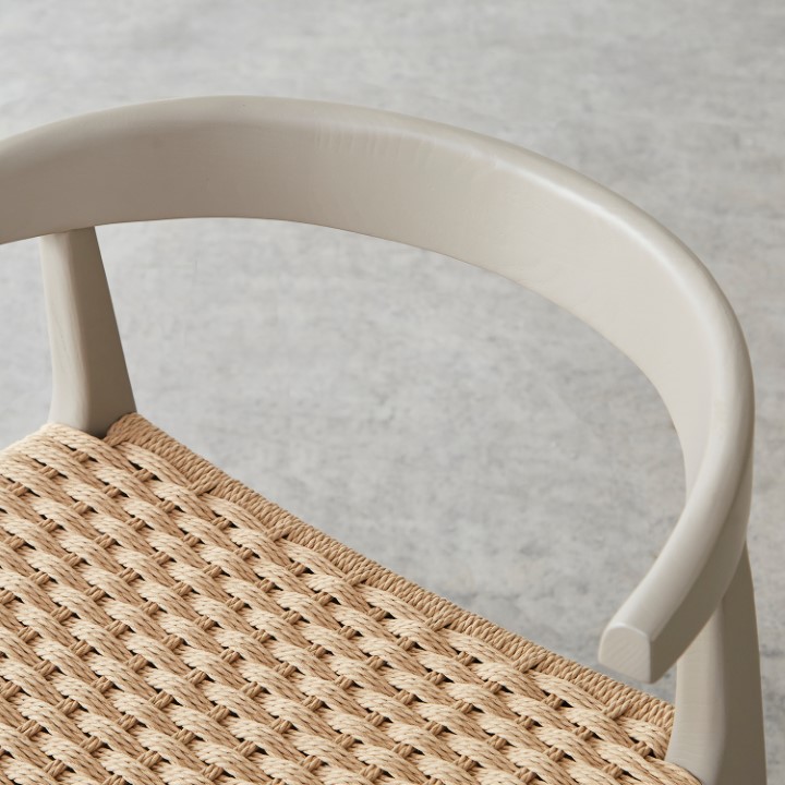 | 備考 | ※アーム部分にはクッション材が付いておりません。テーブルの材質によっては凹みや傷の原因となる場合がございます。市販のフェルトやクッション材を装着していただくことをおすすめしております。 ※天然木を使用しているため、木目や風合いには個体差があります。節や木の表情を理由とした返品・交換はお受けできませんのでご了承ください。 ※個体差によって、若干表記サイズと多少の誤差が生じる場合がございます。予めご了承ください。 ※濡れた状態でペーパーコードに座ると、座面が伸びる恐れがあります。水分をこぼした場合は、や |