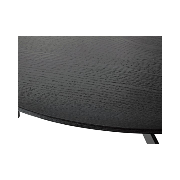 ●天板には重厚感のあるオーク突板を使用し、脚部は異素材のマットな質感のブラックアイアンレッグを組み合わせています。