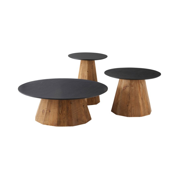 ●オークの美しい木目を残して塗装された黒い天板と、ひとつひとつ表情の違うパイン古材の脚が上品さを出しつつ、ぬくもりを感じさせるデザインのテーブル。●モダンな空間にアクセントとして活用したり、観葉植物などと合わせたボタニカルテイストにピッタリの商品。●テーブルとして、観葉植物を飾る花台としてなど幅広い用途で使用出来ます。