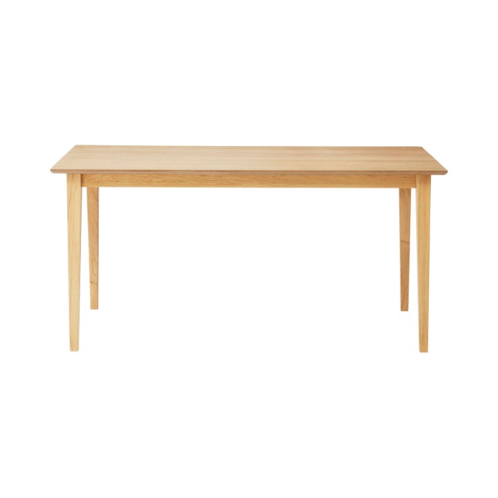●ホワイトオークの木目を活かした、シンプルなデザインのダイニングテーブル。●木目が美しいホワイトオークを使用。清楚感があり上品な色味と木目が特徴で、ナチュラル系インテリアの代表的な材として、オーク材の魅力を活かしたシンプルなデザイン。●脚は天板側から床側にかけて徐々に細くなっていくテーパードレッグ。ダイニングスペースが重くなりすぎず、様々なチェアに合わせられるデザイン。●天板のエッジは斜めにカットしデザイン性の高い仕上がり。●サイズ展開は省スペースでも使いやすい135センチと、4人で座ってもゆったりと使用できる150センチの2種類からお選びいただけます。●木目の表情を活かした天板が食卓に彩りを与えてくれます。