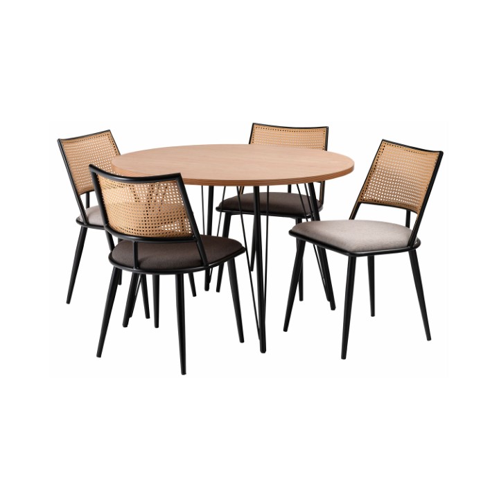 ●温もりのある木目調デザインとシンプルなアイアンが特徴のダイニングテーブル。