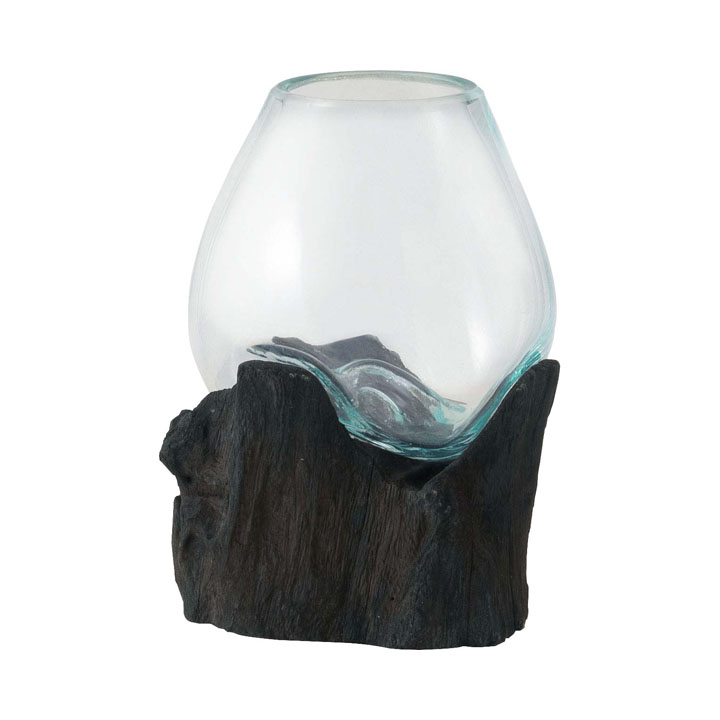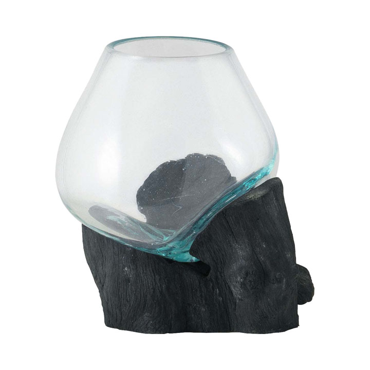 流木にガラスを垂らし成型した、ひとつとして同じ形のものは無い、まさに1点もののガラスオブジェです。
