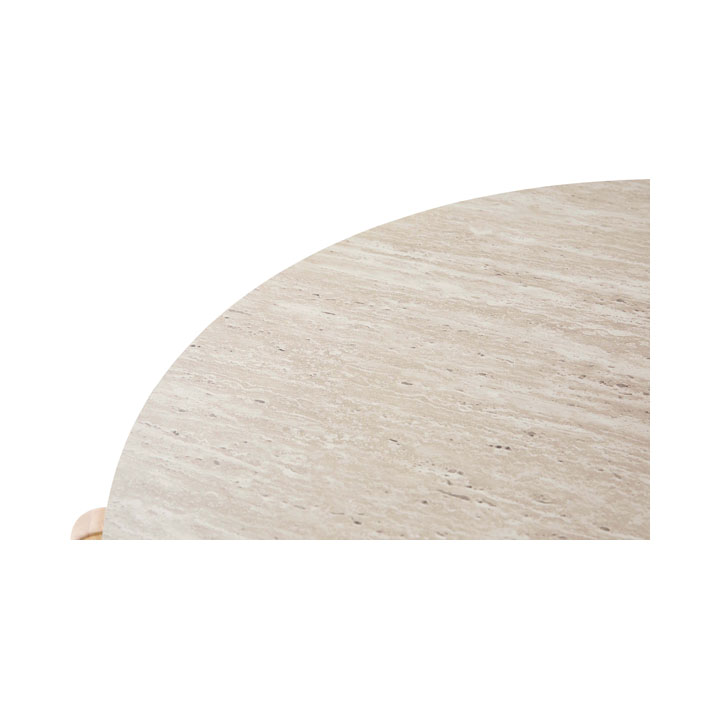 ●大理石調の天板と天然木の脚部は異素材がMIXされたデザイン。