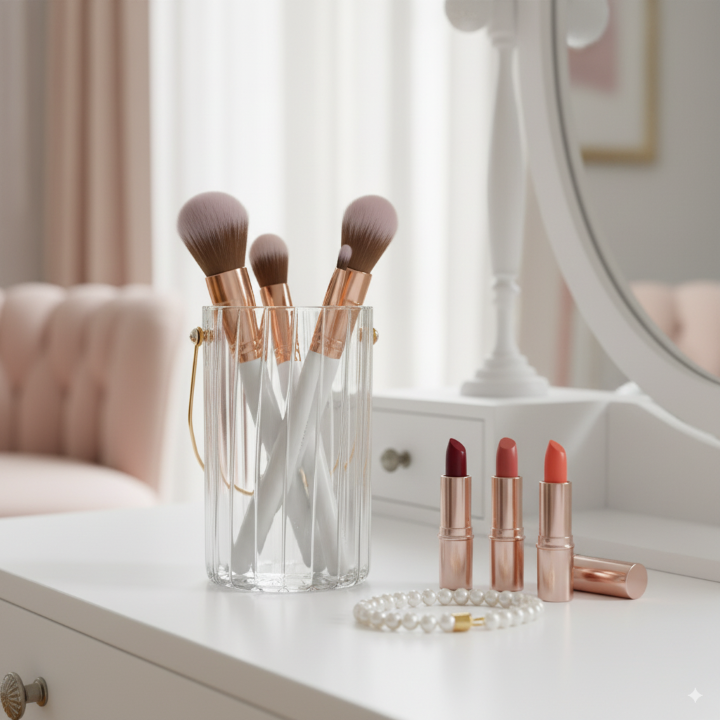 フラワーベースとしてだけでなく、メイクブラシやペンなどの小物を立てる「見せる収納」としても活躍します。ドレッサーやデスク周りを、お洒落で機能的な空間に変えてみませんか。